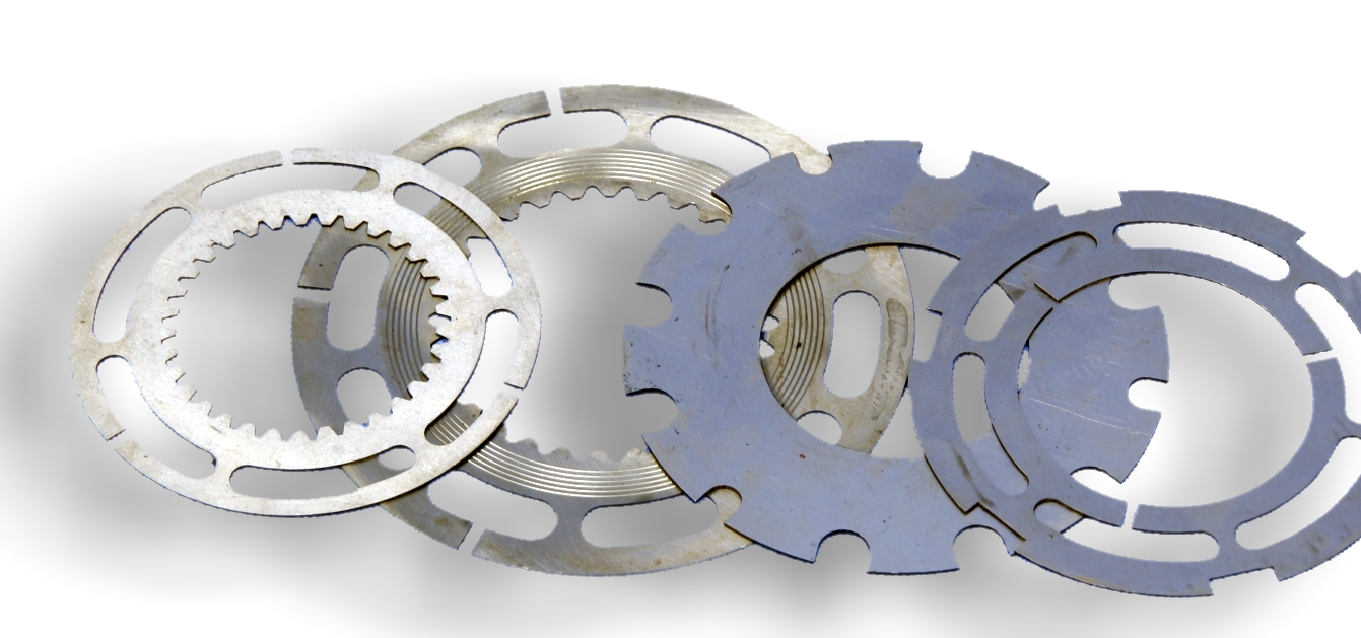 Kupplungslamellen und Bremsscheiben dienen zur Übertragung des Drehmoments vom Antriebsteil auf den angetriebenes Teil des Geräts. Sie werden in Kupplungen und Bremsen eingesetzt, die je nach Art der Kompression des Lamellenpakets in elektromagnetische, mechanische, hydraulische und pneumatische unterteilt werden. Bei Überlastkupplungen werden die Lamellen durch Federn zusammengedrückt. Ihre Reibflächen können mit Metall-Keramik-Sinter oder mit organischen Belägen belegt sein, um die Betriebstemperatur, die dynamischen Eigenschaften und die Höhe des übertragenen Drehmoments zu verändern.